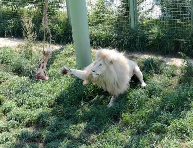 В царський родині іменинник! Свій шостий день народження яскраво та зі смаком відмітив білий лев Людвіг. Частування проходило на радість відвідувачам і на здивування винуватця свята. Свіже м’ясо кролика та ціла теляча нога – чи не про це мріє кожний цар звірів? Тому наш красень був приємно здивований і навіть трохи розгубився від такого різноманіття, чим дуже потішив своїх прихильників, які уважно за цим спостерігали.